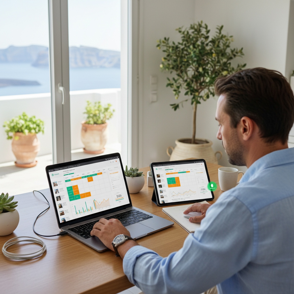 Το Πρόβλημα: Χειροκίνητη Παρακολούθηση Πολλοί hosts και διαχειριστές ακινήτων χάνουν ώρες ενημερώνοντας spreadsheets και ελέγχοντας ξεχωριστά πλατφόρμες. Η λύση; Real-time