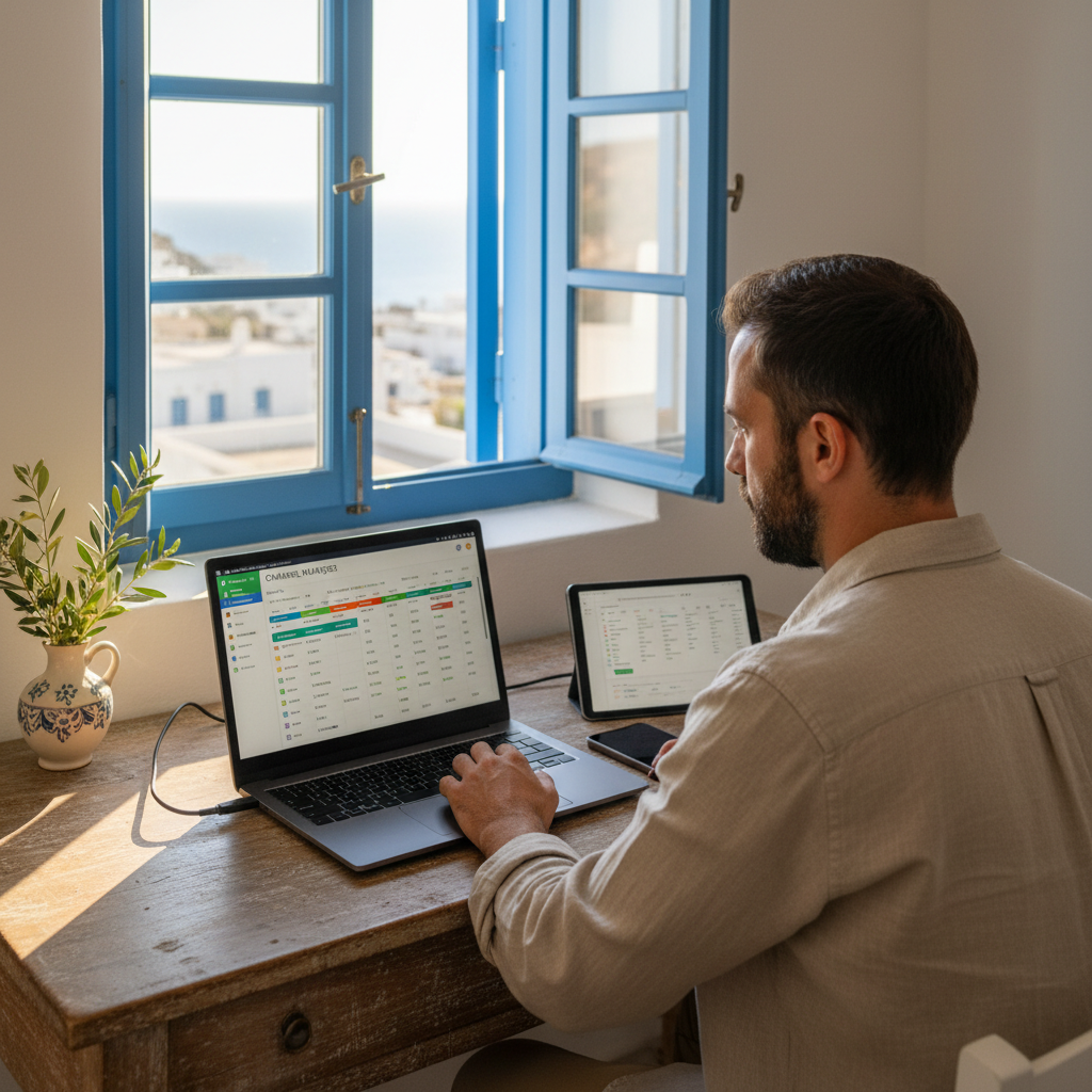 Το Πρόβλημα: Χειροκίνητη Παρακολούθηση Πολλοί hosts στη Μύκονο και στα ελληνικά νησιά χάνουν ώρες ενημερώνοντας spreadsheets, ελέγχοντας πληρωμές και υπολογίζοντας